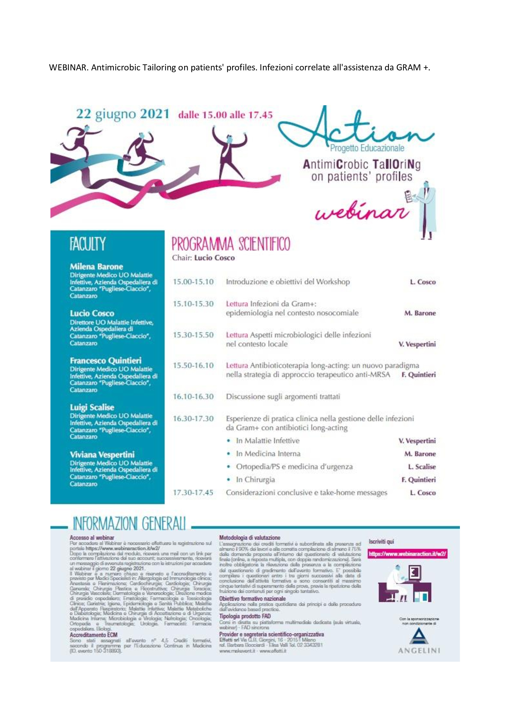 WEBINAR: Antimicrobic Tailoring on patients' profiles. Infezioni correlate all'assistenza da GRAM +.