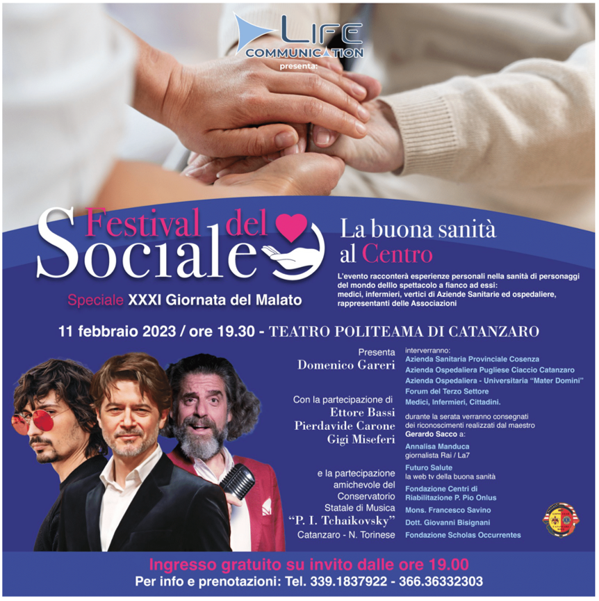 Festival del Sociale – La Buona Sanità al Centro - 11 Febbraio 2023 ore 19.30 Teatro Politeama di Catanzaro