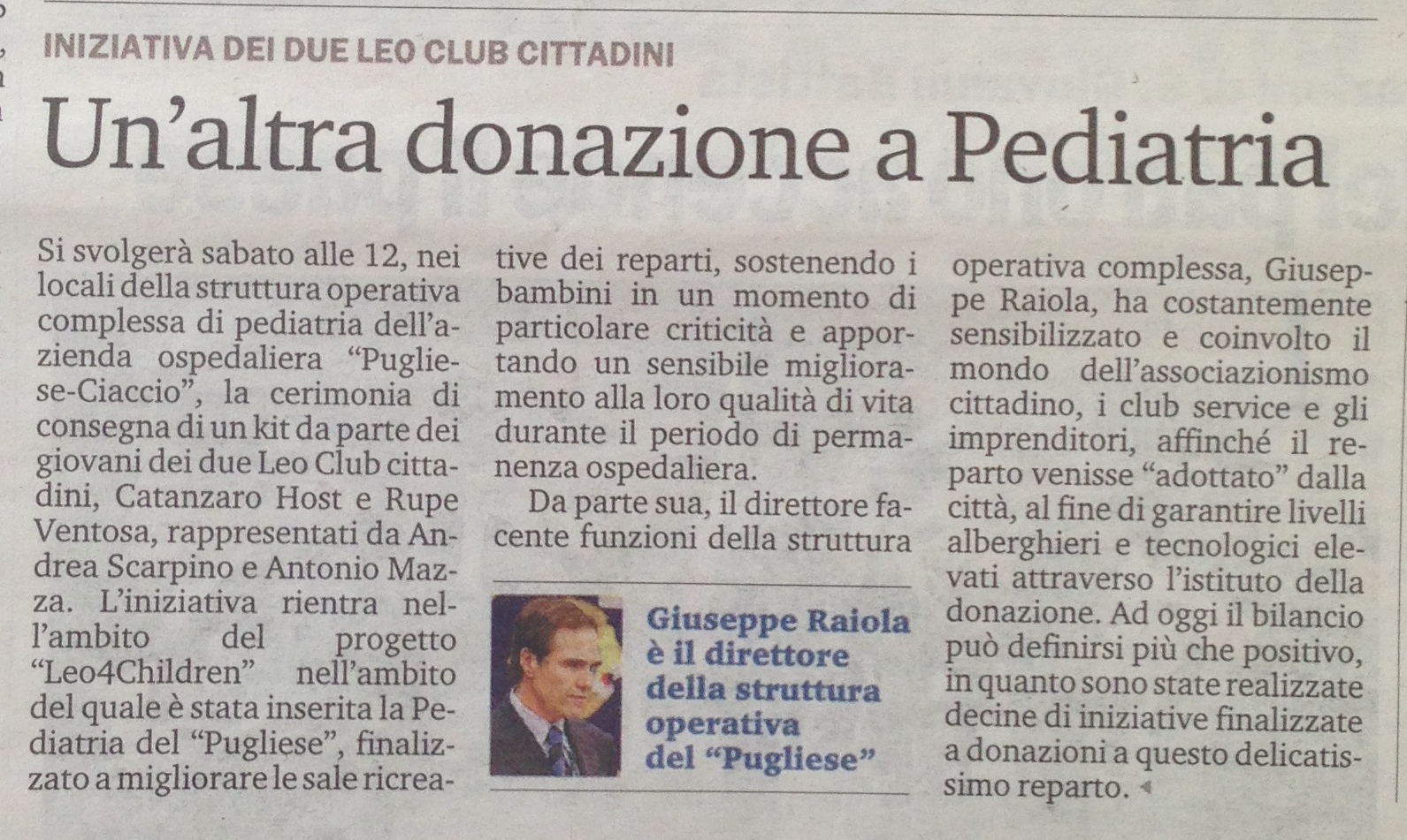 Il Quotidiano della Calabria - Un'altra donazione a pediatria