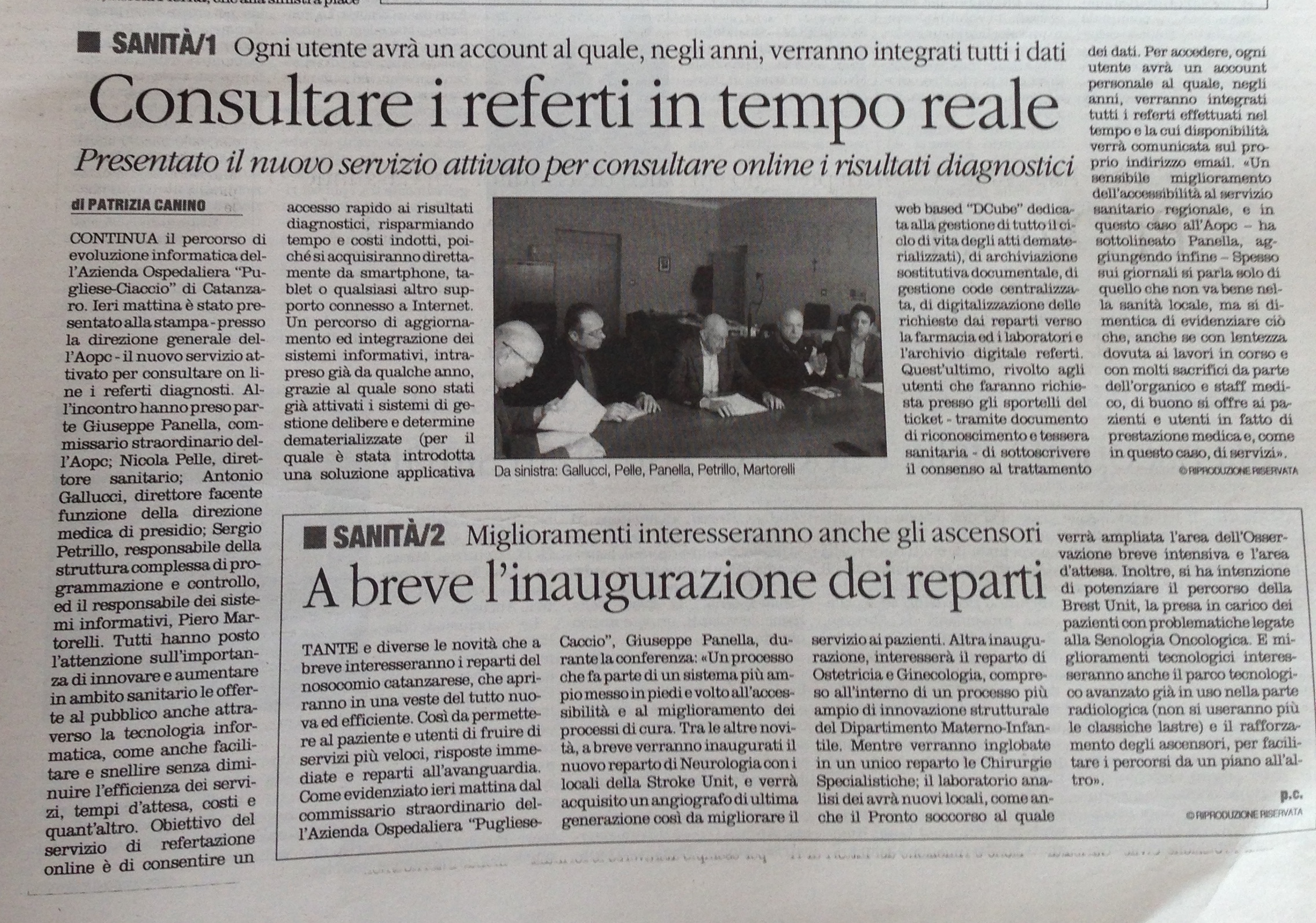 24 marzo 2017 - Il Quotidiano della Calabria - Consultare i referti in tempo reale